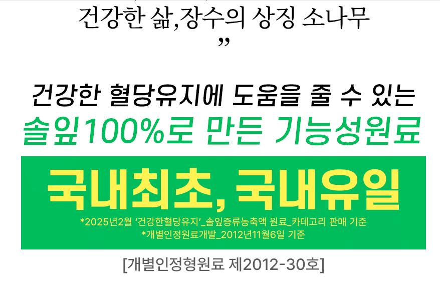 | 혈당조절 | 솔잎 성분의 글리코키닌이 혈당을 자연스럽게 조절 |